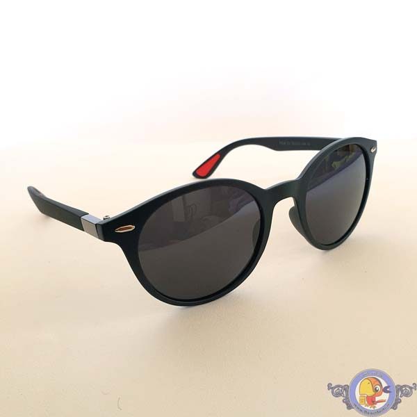 رنگ بیرون فریم عینک مشکی با دسته هایی در انتها قرمز با طرح لاک پشتی است