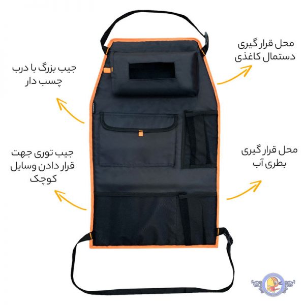 قابل استفاده در پشت صندلی های جلو و جلوی صندلی های پشتی ماشین