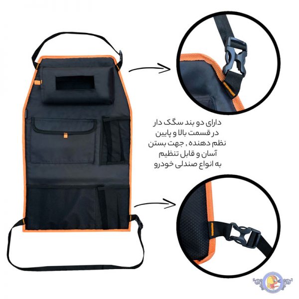 دارای دو نوار سگک دار در هر دو قسمت بالا و پایین این نظم دهنده مناسب برای انواع خودرو