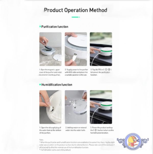 آبی که داخل Baseus Freshing Breath Car Air Purifier CRJHQ01-01 ریخته می شود از یک فیلتر عبور کرده و به بیرون هدایت می شود و به همین دلیل بهتر است از آب مقطر یا آب تصفیه شده استفاده کنید. همچنین باید توجه داشته باشید که در صورت استفاده همزمان از دو قابلیت یا استفاده از Auto امکان دارد رطوبتی روی دستگاه بنشیند که پیشنهاد می شود برای هرچه بهتر کار کردن این محصول آن را همواره خشک نگه دارید.