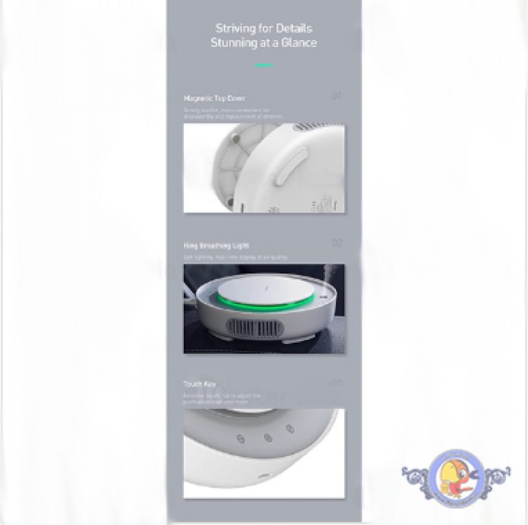 کمپانی بزرگ Baseus دستگاهی طراحی کرده اند که با افزایش رطوبت و کیفیت هوا , تصفیه کننده و بخور سرد بعلت طراحی جذاب و ارائه دادن چند کاربرد در یک محصول برنده جایزه طراحی Golden Pin Awards شده است.