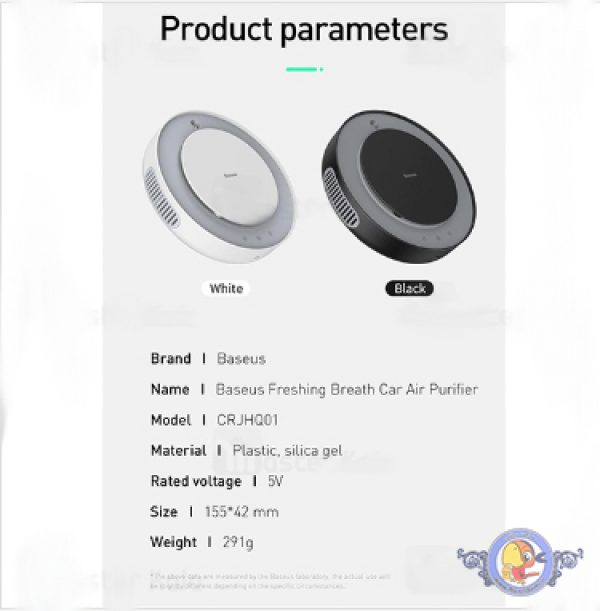 دستگاه بخور سرد Baseus Freshing Breath Car Air Purifier CRJHQ01-01 هم یک دستگاه بخور سرد می باشد و هم می تواند با استفاده از چراغ LED به کار رفته در آن کیفیت هوای اطراف را به شما نشان دهد.این دستگاه با ایجاد بخار سرد می تواند هوا را مرطوب و تنفس را بسیار راحت تر کند. رطوبت این محصول سرد می باشد و شاید برای شما جای سوال باشد که چگونه این بخار سرد تولید می شود. این دستگاه با ارسال امواج به داخل آب بافت مولکولی آن را از بین برده و باعث می شود تا آب به ذرات بسیار کوچک معلق در هوا تبدیل شود و بعد از این فرآیند آن را با فشار بالا به خارج از دستگاه هدایت می کند.