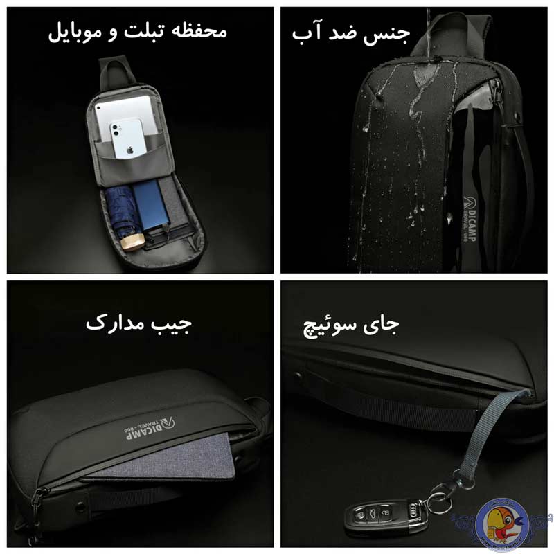 بادی بگ دیکمپ مدل 060 اصل ، یک انتخاب عالی برای کسانی است که به دنبال یک کیف کارآمد برای حمل لوازم شخصی ، لوازم و ابزار کوچک که در طول روز به آنها نیاز دارند. این محصول با طراحی منحصر به فرد و قابلیتهای متعدد خود، به شما این امکان را میدهد تا چندین وسیله از جمله تبلت، گوشی، پاوربانک، چندین دفترچه و … را به همراه خود داشته باشید. بدنه کیف از جنس پارچه برزنت ضد آب یا شمعی با ضخامت بالا ساخته شده که مقاومت بسیار زیادی در مقابل سایش و پاره شدن دارد و در ضمن ضد آب نیز میباشد. در میان بدنه از فوم های حبابی ضربه گیر استفاده شده و حداکثر محافظت را از وسایل شخصی شما خواهد داشت.