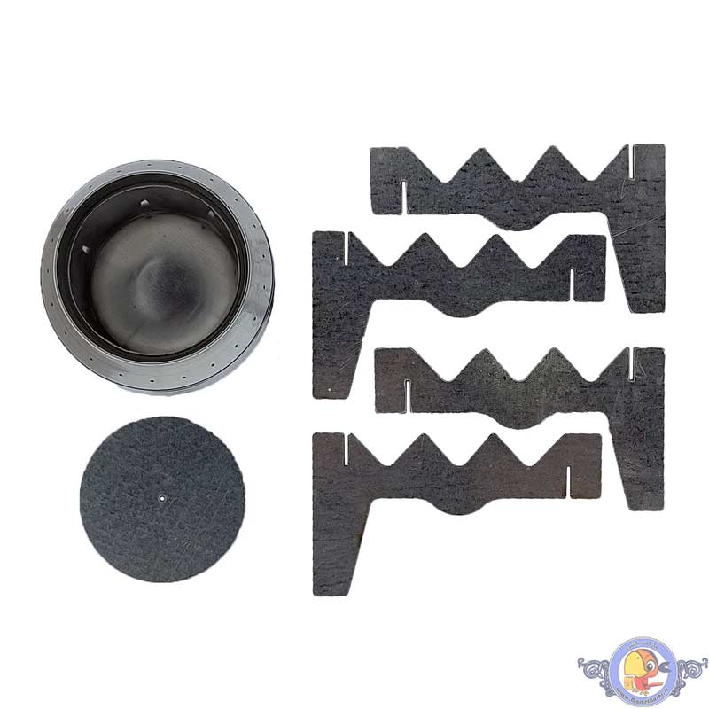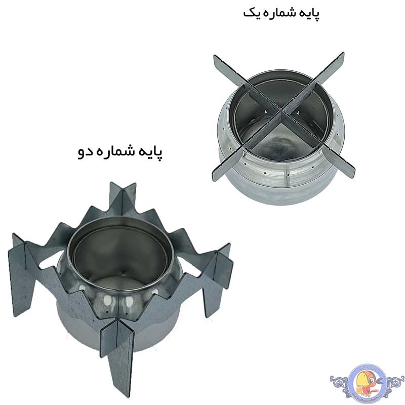 این اجاق دارای دو مدل پایه است که به همراه آن ارائه خواهد شد، یک پایه روی اجاق سوار می شود و پایه دوم دور اجاق سر هم میشود که در عکسها به نمایش درامده است و نحول وزن بالایی دارد.