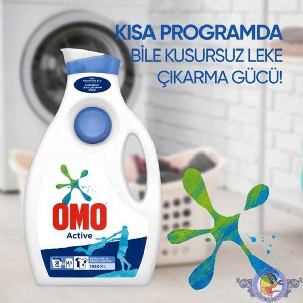 مایع لباسشویی امو OMO Active Fresh 1950ml ،شستشوی کامل و بی نقص لباسها را در ماشین لباسشویی انجام می دهد. این محصول دارای فرمولاسیون فشرده است و به دلیل مواد معدنی غنی و فعال موجود در مایع لباسشویی اومو نیازی به پیش شستشوی لباس ها (Pre-Wash) نیست. در صورت تمایل می توانید این محصول را مستقیما بر روی لکه لباس بریزید.این مایع لباسشویی کمترین آسیب را به لباس ها می زند. بدون نیاز به پیش شستشو و تنها با استفاده از یک پیمانه پر از مایع امو، در همان شستشوی اول بهترین نتیجه را خواهید دید .