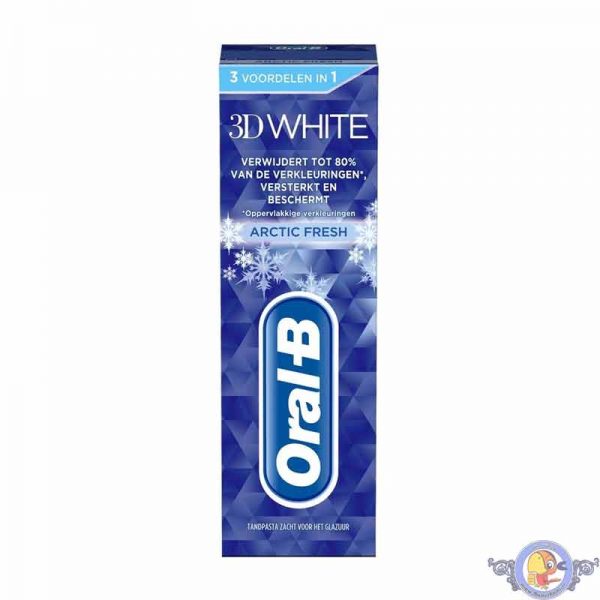برند محبوب «اورال-بی» با درنظرگرفتن تمام ضایعات دهان و دندان و با برخورداری از تنوع در تولید خمیر دندان توانسته به تمامی افراد با هر نوع مشکل دندانی خدمتی موثر ارائه کند. نمونهای از خمیر دندانهای این برند تمیزکنندهی عمیق دندان از سری 3D WHITE است. خمیردندان اورال-بی 3D WHITE مدل Arctic Fresh حجم 75ml یک محصول کامل محسوب می شود این خمیر دندان 3 کاره، علاوه سفید کنندگی سبب تقویت مینای دندان و از بین بردن پلاک های سطح دندان می گردد. برند اورال بی مدعی است این محصول 80% پلاک های دندان را از بین می برد.