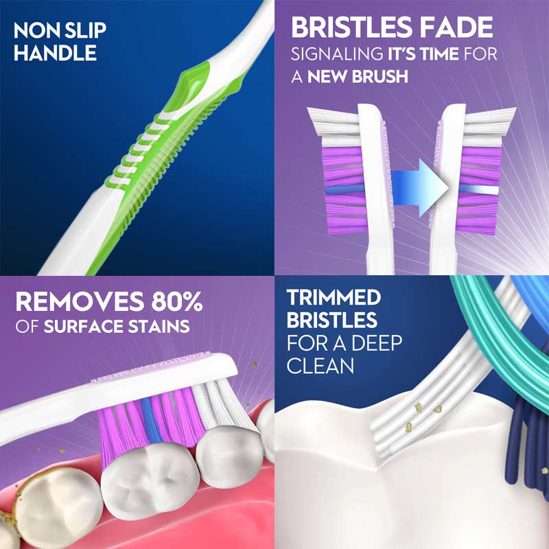 یکی از نقاط قوت این مسواک، برس های زاویه دار و متقاطع و دارا بودن پرس بلند تر در قسمت سر برای نفوذ عمیق به فواصل بین دندانی و همچنین دندان ها انتهایی است. با حرکت ملایم روی سطح دندان، به سفیدتر شدن طبیعی دندانها کمک میکند. همچنین طراحی ارگونومیک دسته باعثکنترل بهتر درهنگام مسواکزدنشده و دسترا خستهنمیکند. مسواک Oral-B 3D White – white fresh تحت استانداردهای سختگیرانه کیفی اورالبی تولید شده. این محصول انتخابی ایدهآل برای افرادی است که به دنبال دندانهایی تمیزتر، سفیدتر و لبخندی درخشانتر هستند، بدون نیاز به استفاده از روشهای تهاجمی سفیدکننده.