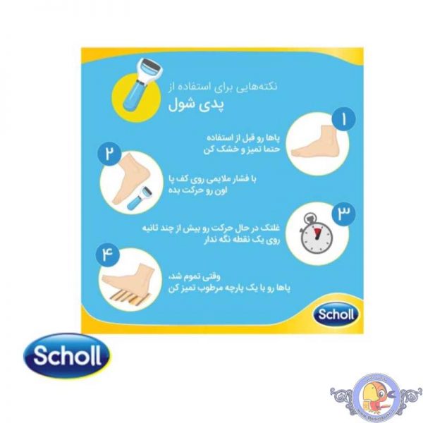 این سنگ پا از 4 باطری تغذیه می کند که مخزن باطری آن در قسمت زیرین دسته قرار دارد و با آن می توان به راحتی پوست های مرده را جدا کرد. سری سنگ پای شول از ذرات زیر کریستالی ساخته شده و پس از مدتی بر اثر سایش صاف و هموار می گردد که در این صورت می توان به آسانی با فشار دادن کمه ی کنار دستگاه سری آن را تعویض نمود. برای نتیجه گیری بهتر توصیه می شود پس از استفاده از سنگ پای شول پاها را با آب گرم شستشو داده و از کرم هایی با نرم کنندگی بالا استفاده شود.